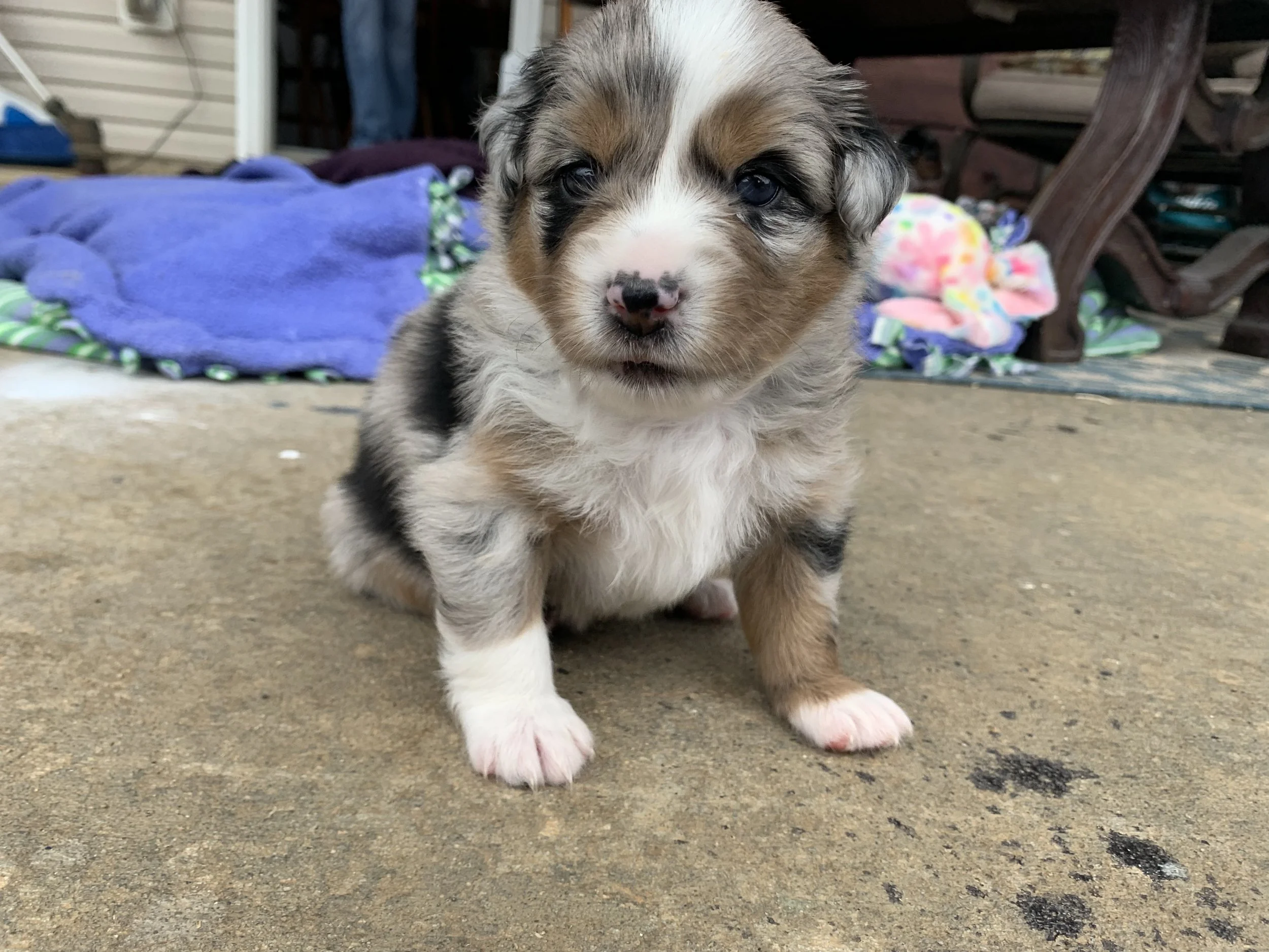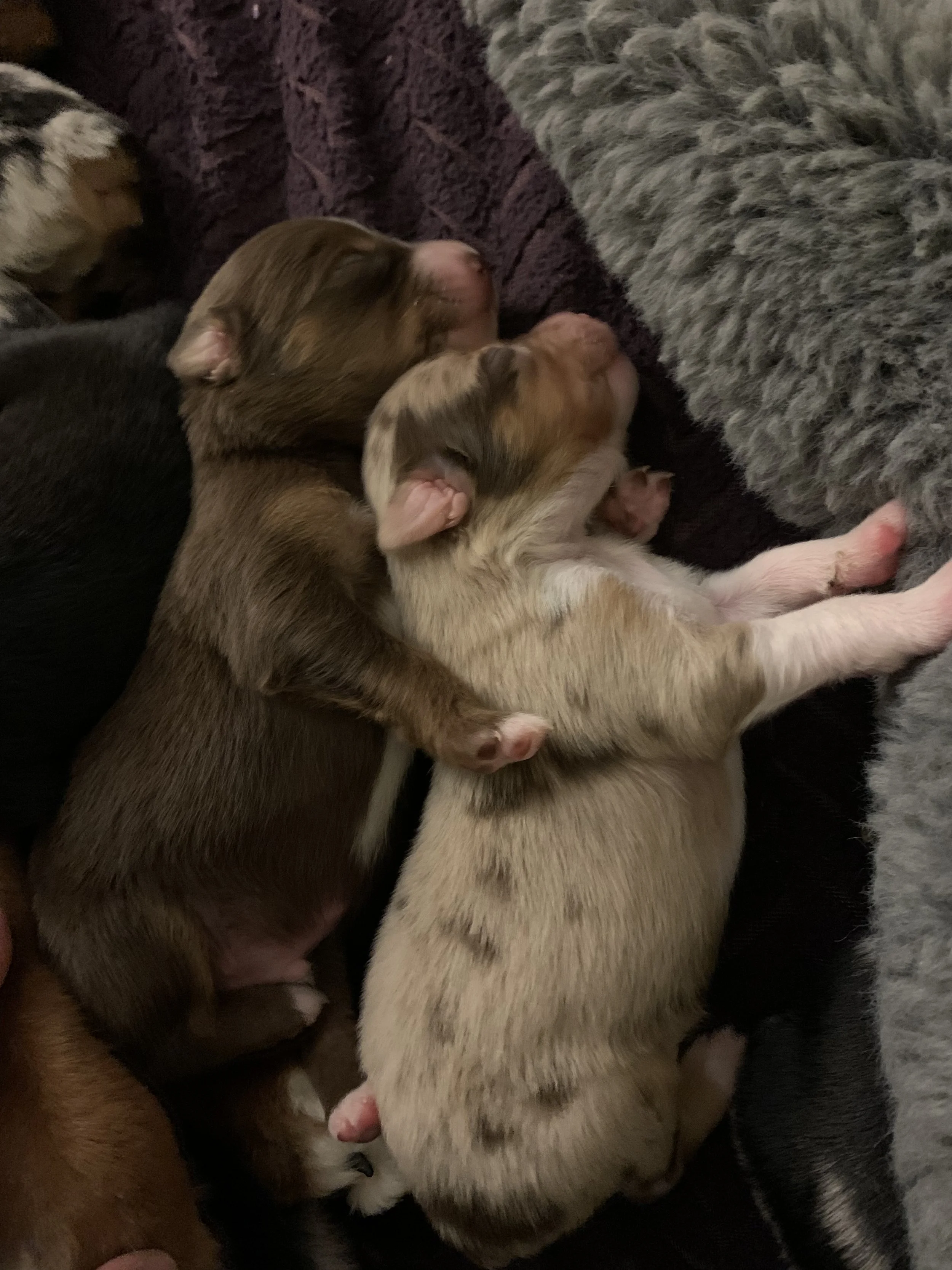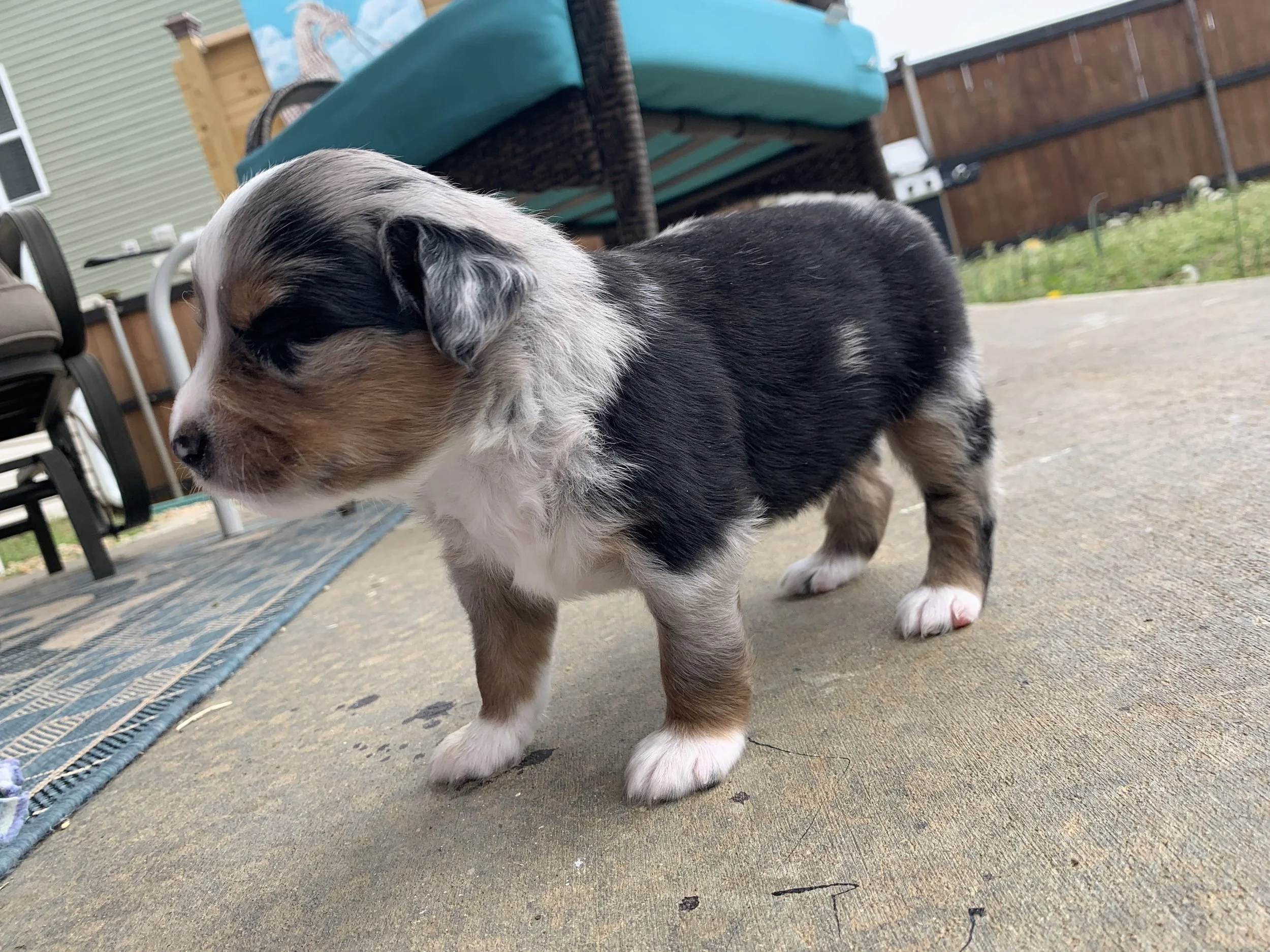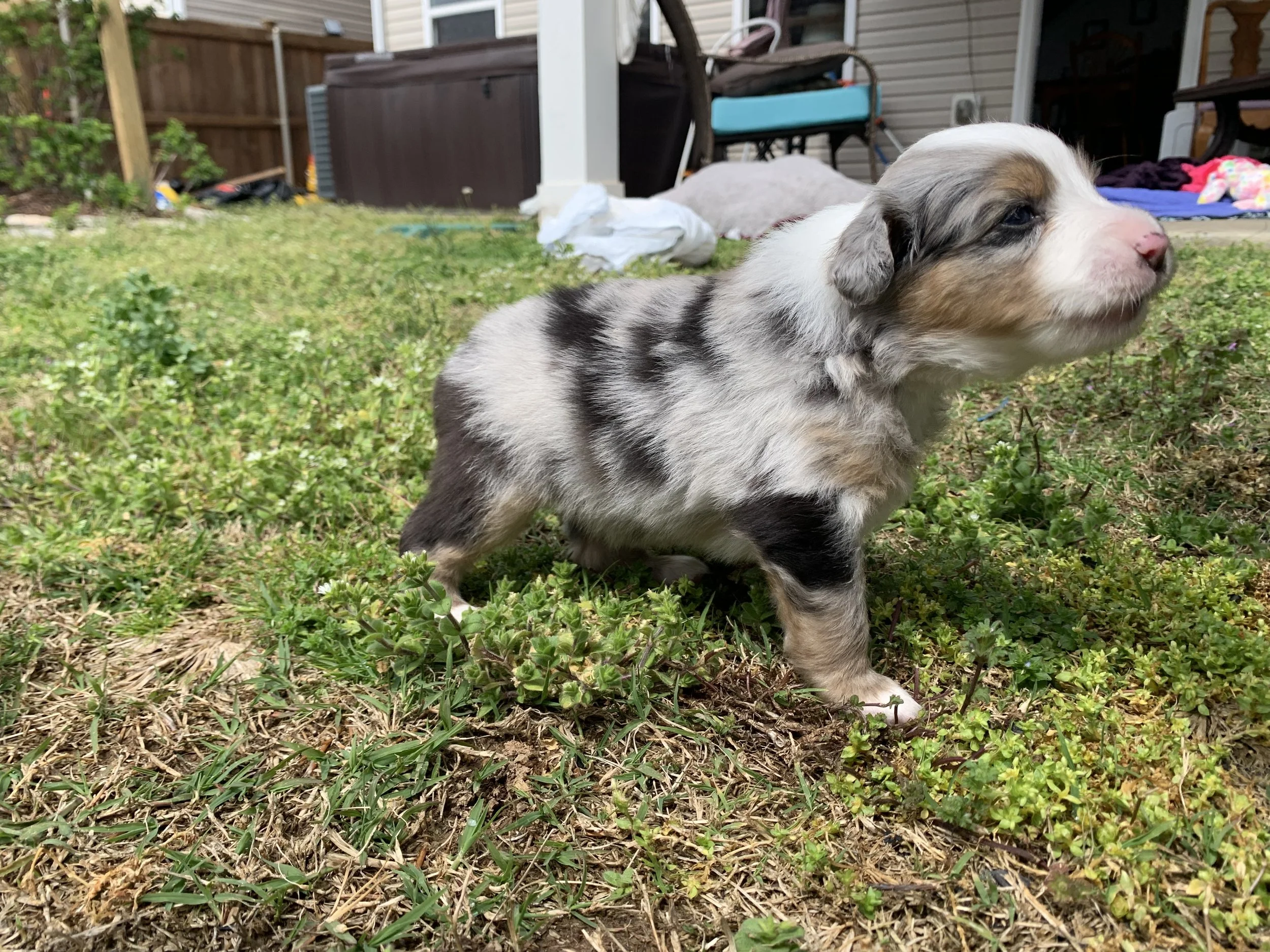Navi had only 2 puppies. A black tri male (Dipper/Milo) and a our keeper blue merle female, Mabel.