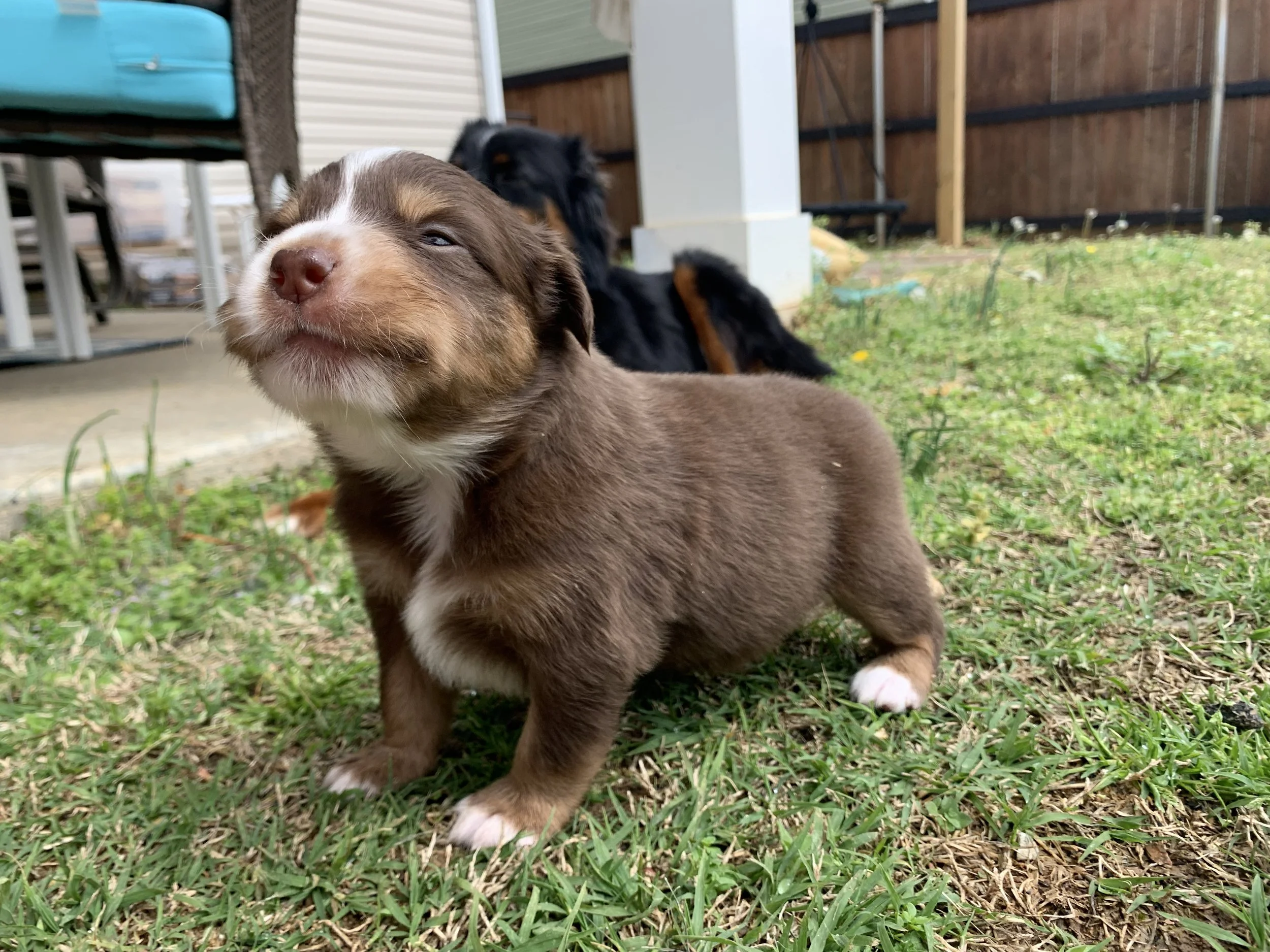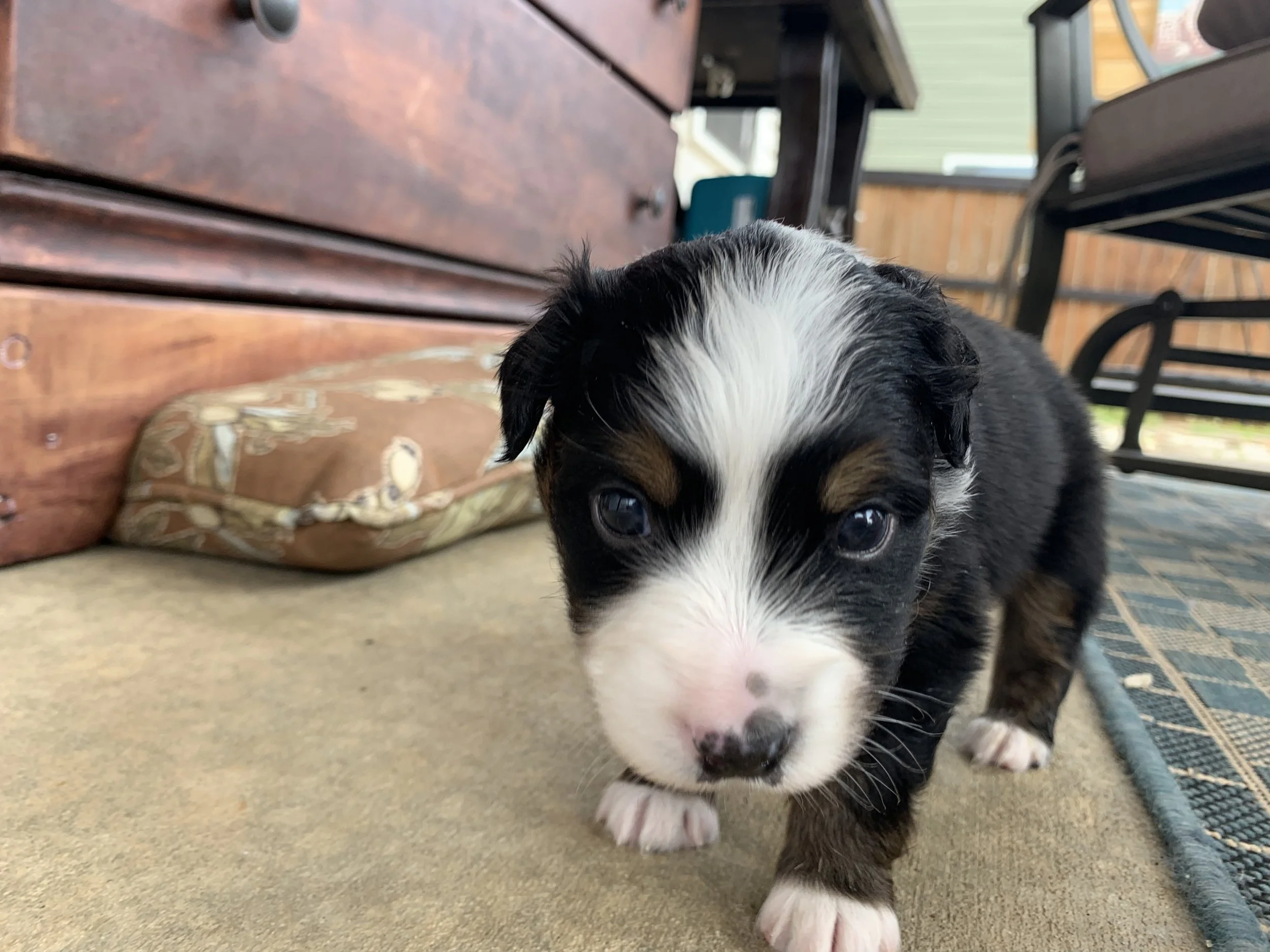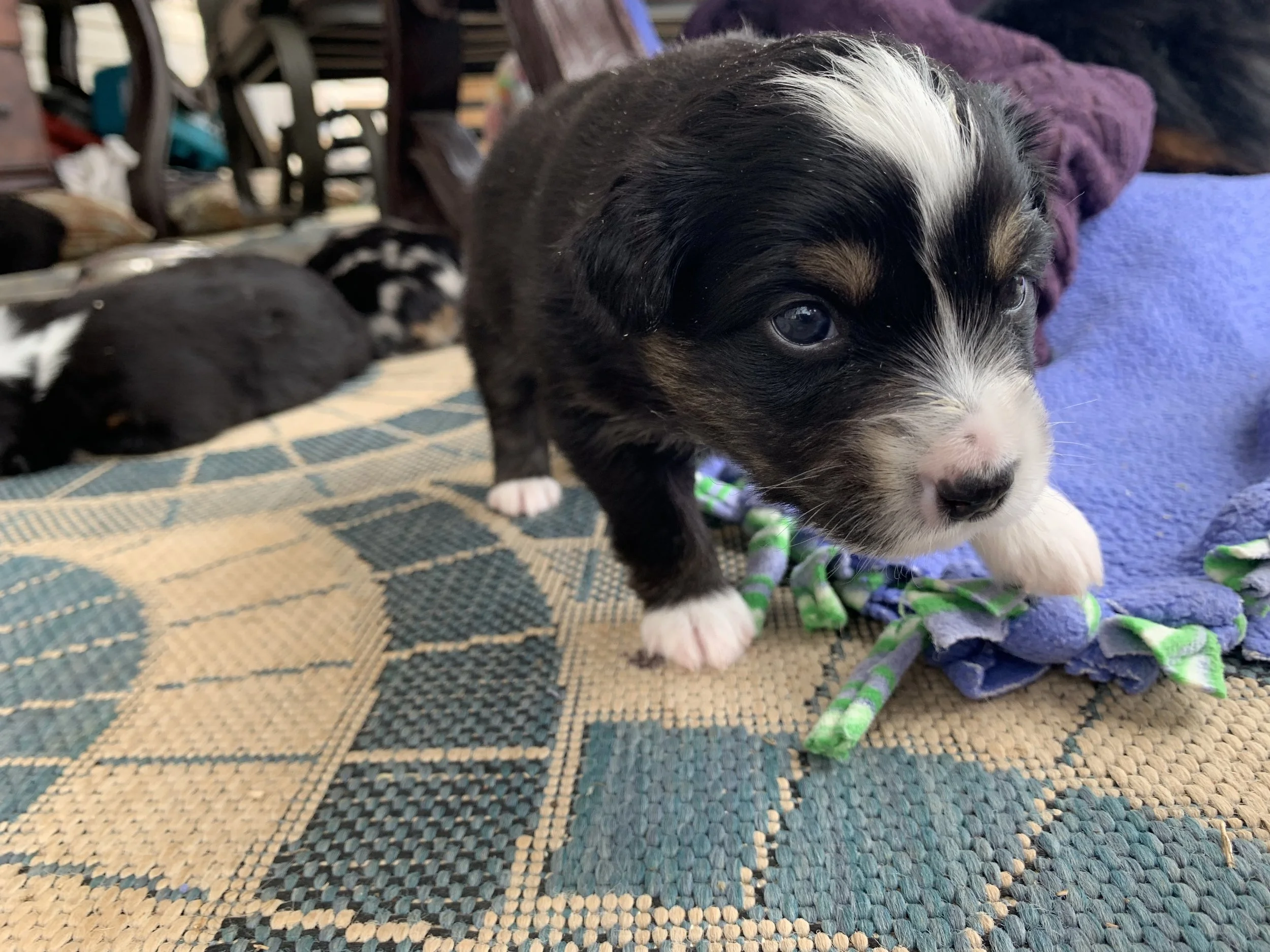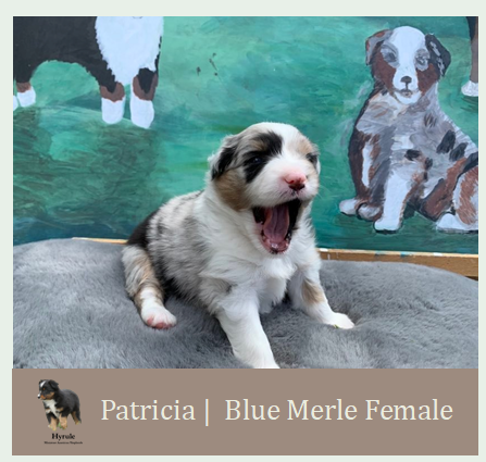 Navi had only 2 puppies. A black tri male (Dipper/Milo) and a our keeper blue merle female, Mabel.